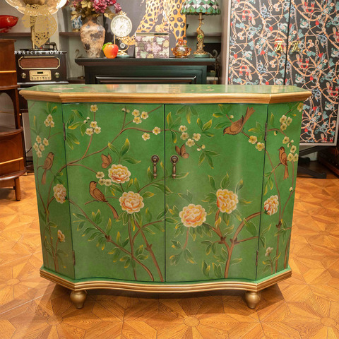 家具キャビネットフレンチロイヤル玄関ドア付きグリーンカラー無地木製靴キャビネット装飾リビングルームベッドルームヴィラ