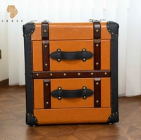 クラシックヴィンテージレザートランクキャビネットポータブル金属Mesitas De Noche寝室家具Criado Mudoベッドサイドテーブルナイトスタンド