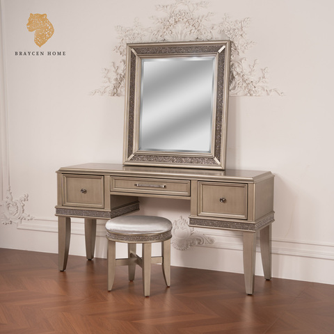 フレンチスタイルドレッサーGlamミラーフレームシニークリスタル装飾バニティテーブルドレッサーガラスドレッシングテーブル寝室用家具