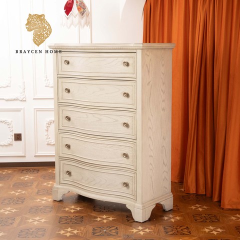 アメリカ製引き出し高胸レトロ家庭用家具カーブストレージキャビネットソリッドウッドサイドキャビネットリビングルームヴィラ