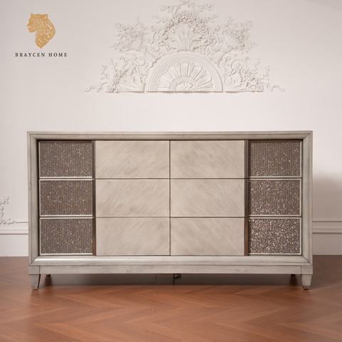 フレンチロイヤル高級ドレッサー寝室家具無地木製コンソールキャビネット家庭用またはアパート用6引き出し収納