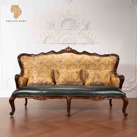高級ヨーロピアンスタイル3人乗りソファ本革ソファModernos彫刻リビングルームアンティークグリーンソファリビングルームソファ